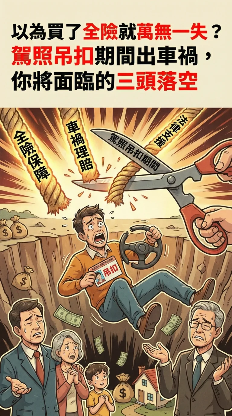 以為買了全險就萬無一失?駕照吊扣期間出車禍,你將面臨的三頭落空